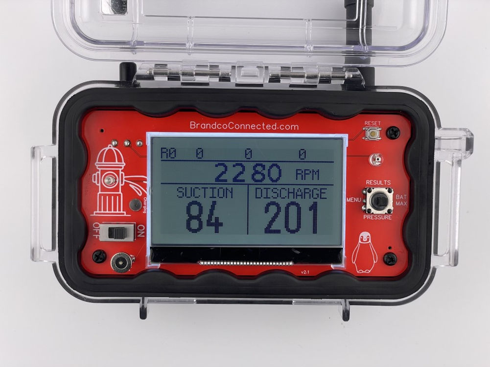 - Displays suction PSI, discharge PSI, RPM and total GPM realtime with updates 3x/sec (depending on range setting)